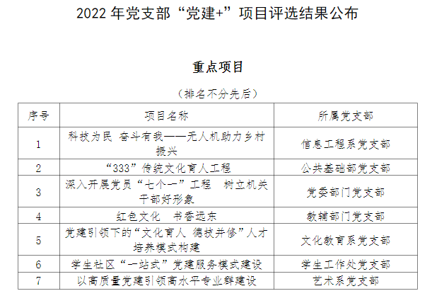 经项目专家组认真评定,信息工程系党支部的“科技为民 奋斗有我——无人机助力乡村振兴”等七个项目被评为重点项目,十一个项目被评为一般项目。重点项目、一般项目各奖补1500元、800元,分两次支付,第一次公布完确定项目后支付60%,第二次在年底项目完成验收后支付剩余的40%,没有正当理由未完成项目的单位,学院有权追回已发奖补。项目2022年年底前完成,实行申报党支部承办、党委组织统战部督办的工作机制;中期听取汇报和督查指导,适时组织经验交流和现场观摩;后期开展项目验收和项目评估,及时把项目成果转化为理论成果和制度成果,提升基层党建工作整体水平。
