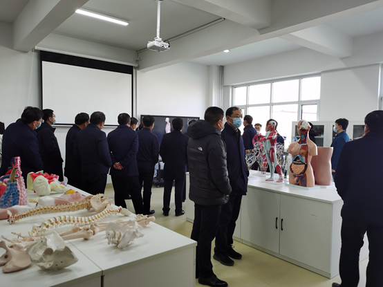刘东波一行听取了我院高铁校区项目建设情况汇报并参观了健康管理系实训室。