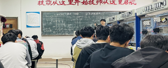 在李峥老师讲授的【电动机的应用】课程时,该教师由大到小进行介绍从工业中的机床、传送带,再到农业中的水泵、脱粒机,最后到生活中的空调、洗衣机等方面进行多维度介绍,因部分机器切合学生生活实际,所以更能引起学生的学习兴趣。在本节课的动手操作环节,李老师先将电路连接过程中所需器件及其工作原理和使用注意事项为学生讲清、讲明、讲透,再将电路图以板书形式展示在黑板上,为使学生能清楚理解电路图的含义,该教师一遍绘图一边进行实际操作,随后邀请学生进行电路图的知识输出。在确定学生对理论知识掌握后,将实际操作权交由学生进行练习,教师进行适当的引导与指导,课堂效果良好。
