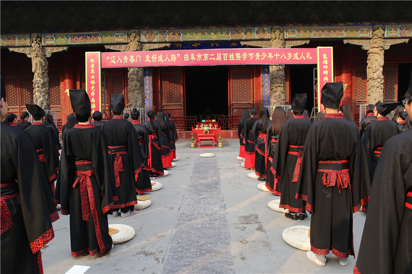 2015年12月19日下午,由团中央、全国学联、全国少工委和山东省人民政府主办、山东团省委。山东省教育厅、山东省学联和曲阜远东职业技术学院承办的“迈入青春门,走好人生路”曲阜市第二届百姓儒学节青少年十八届成人礼活动。我院72名同学在学校领导及老师带领下去孔庙参加此次活动。