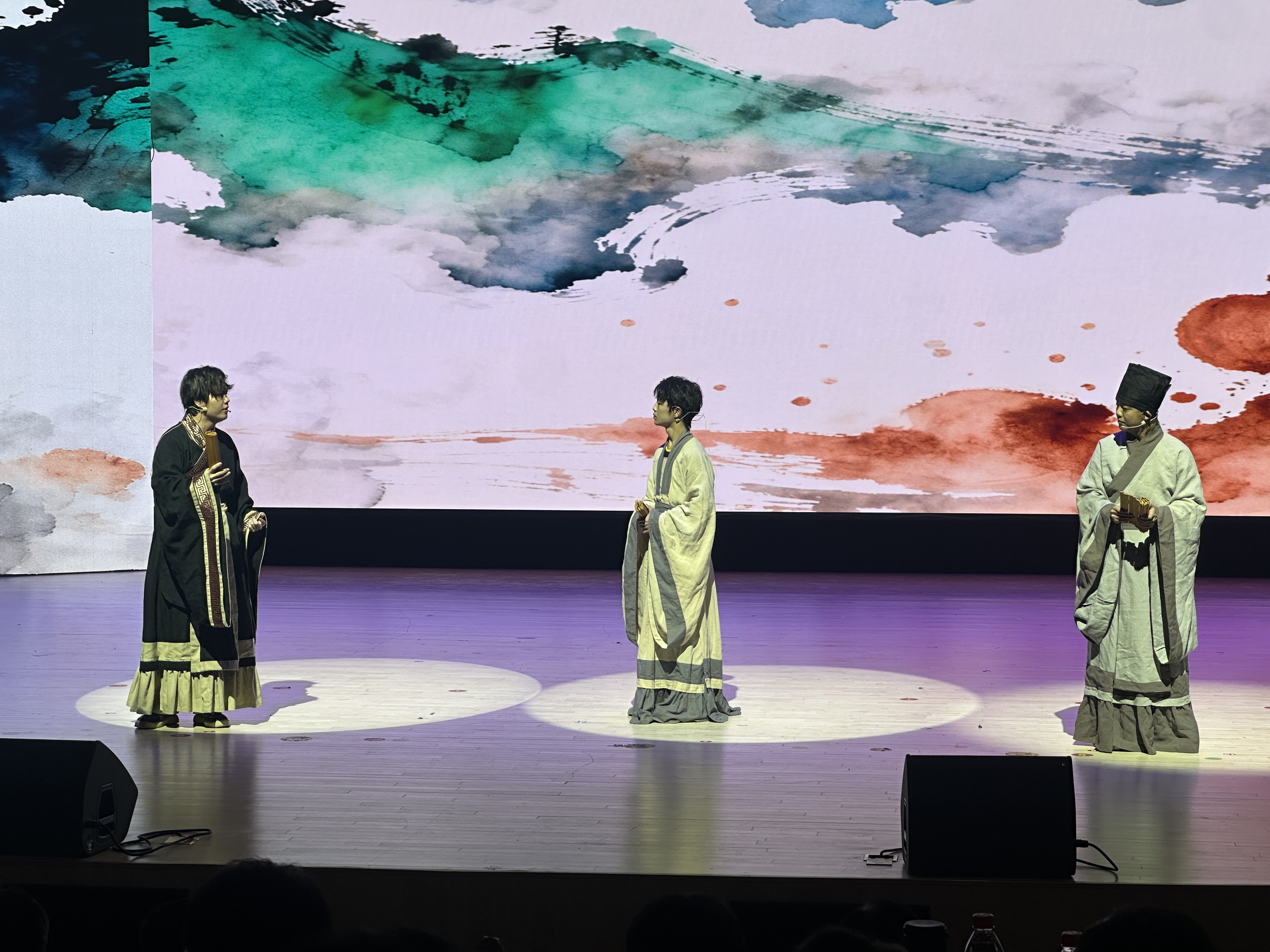 大会“了如指掌”“当仁不让”“勇者不惧”“游于艺”四个层层递进的比赛环节,既考验选手的经典积累,又注重思辨能力与创新表达。在最受关注的“当仁不让”辩论环节中,我校代表队的三位学子展现出高超的辩论技巧与严密的逻辑思维。他们引经据典时信手拈来,驳斥观点时一针见血,既紧扣《论语》经典内涵,又结合新时代大学生的使命担当展开论述,将传统智慧与现实议题巧妙融合,最终以91.33分的高分斩获该环节全场第一,成为现场最亮眼的团队之一。“勇者不惧”风险答题环节中,我校选手沉着冷静、默契配合,面对不确定的分值挑战果断抉择,在紧张的比拼中展现出良好的心理素质与团队协作精神,进一步巩固了团队优势。压轴的“游于艺”创意展演环节更是将赛事推向高潮。我校文化旅游学院选送的《三人行》节目独具匠心,以“三人行必有我师焉”为核心,将经典原文与现代校园生活场景相结合,通过生动的演绎与深情的诵读,让古老的智慧在当代语境中焕发新生,凭借新颖的创意与精湛的表现赢得满堂喝彩,成为展演环节的一大亮点。