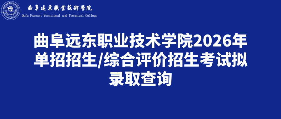 曲阜远东职业技术学院 关于2026年单独考试招生和综合评价招生拟录取查询公告