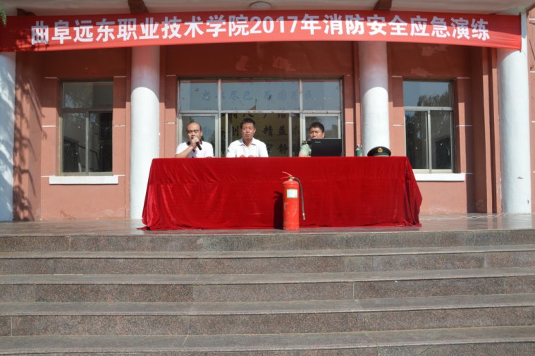 为进一步增强学生消防意识,提高学生对校内火灾的应急扑救处置能力,2017年5月17日下午,由曲阜远东职业技术学院和曲阜市消防中队联合举办了2017曲阜远东职业技术学院消防应急演练。全校各级领导以及相关单位负责同志到现场观摩。我校全体学生参加了本次大型消防演习。